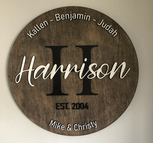 19.5" wood round 3D signs for your home. Signs will be stained and then laser cut letters will be applied to the sign. Customize signs.