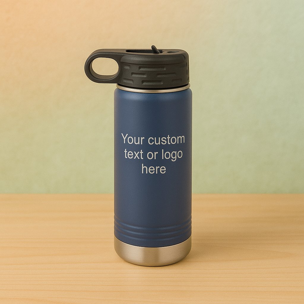 Personalize your water bottle with your name, custom text, or logo. Our water bottles are customized using a laser engraving process that will not fade or break down over time. Colored powder coating will not peel or scratch after rigorous use.