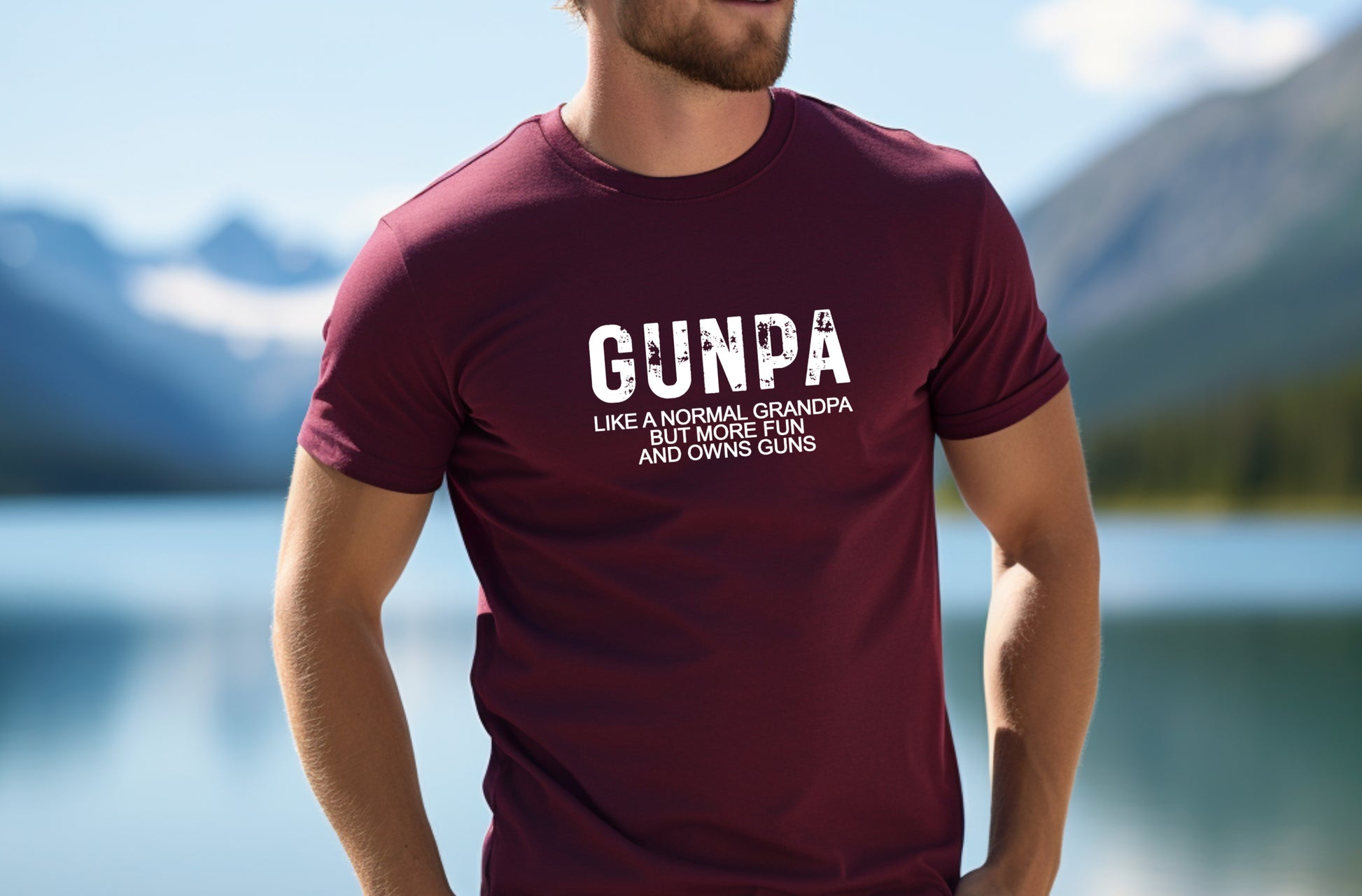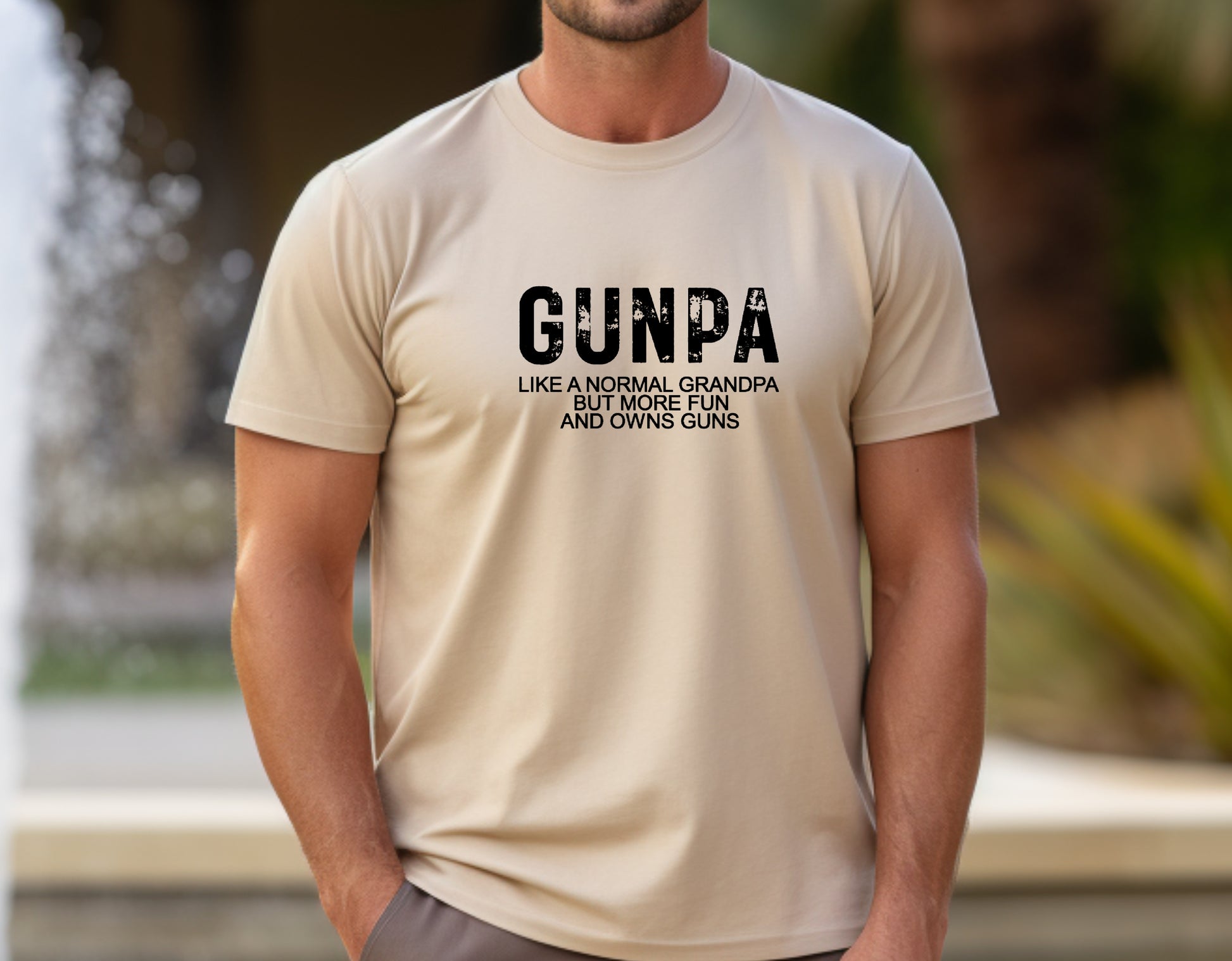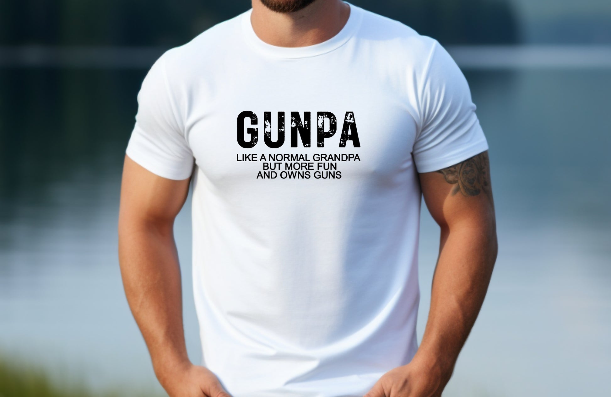 Gunpa men's tshirt! You can choose all the same color or mix and match. You can also swap out the wording for a different color t shirt. These designs are heat transferred.