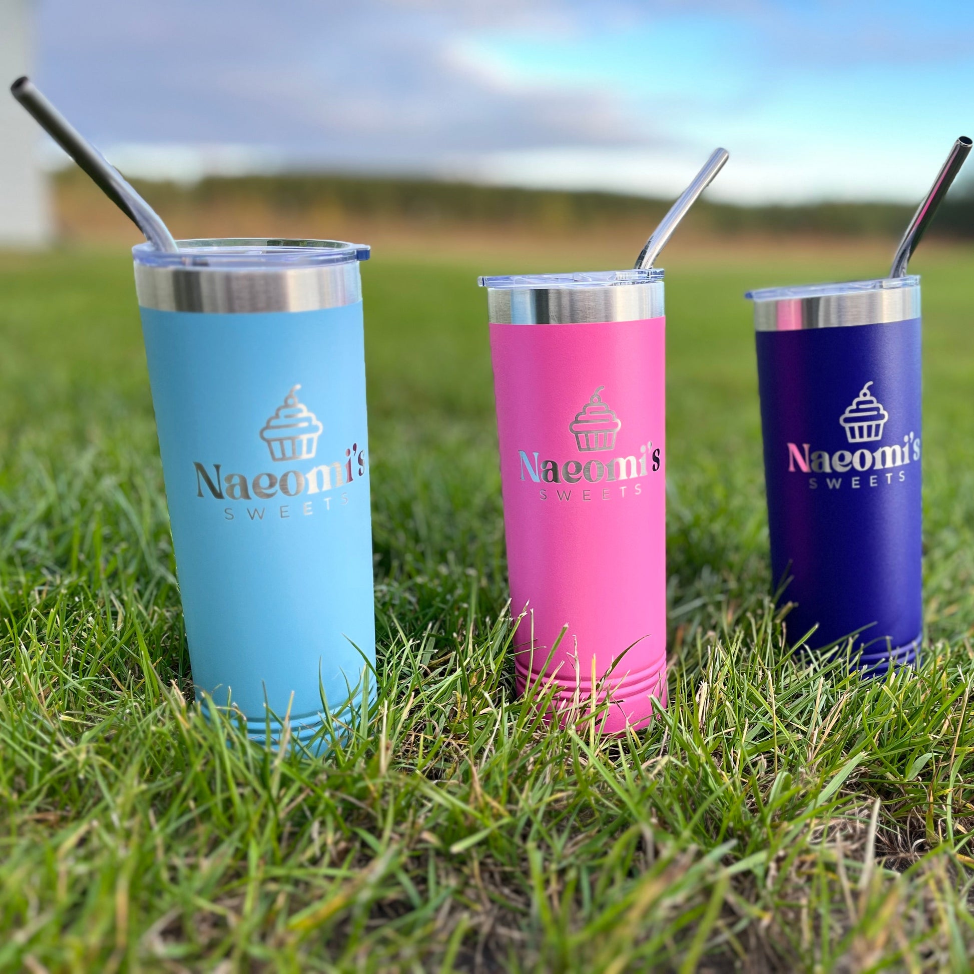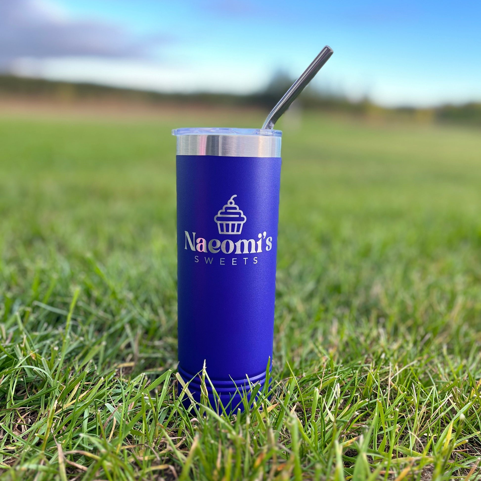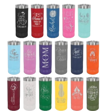 Stainless Steel Powder Coated Skinny Tumbler, metal straw, 22 oz. size. Laser Engraved. Personalize.
