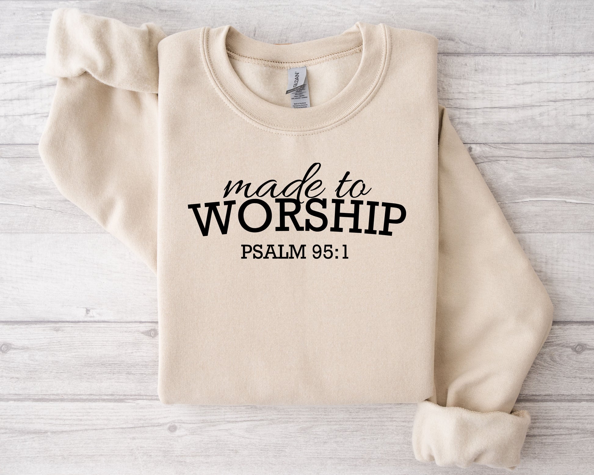 Made To Worship Crewneck Sweatshirt. These sweatshirts are heat transferred images.